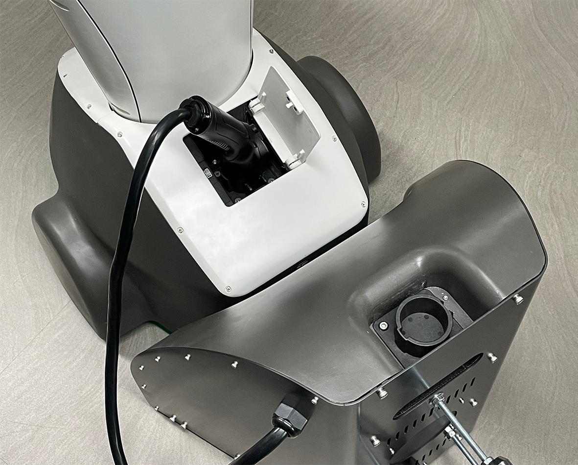 1. 충전기 커넥터를 로봇의 Power Port에 연결합니다.