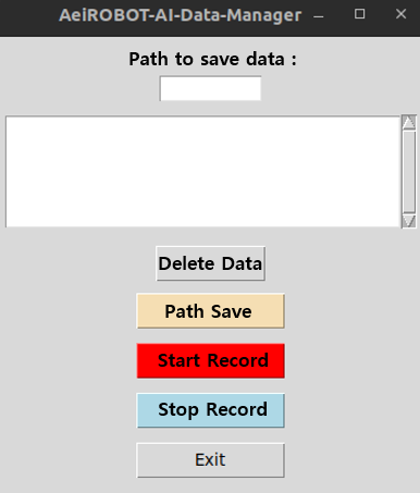 - 로봇 실행 후 SSH 또는 VNC로 사용자 PC에 접속하여 데이터 수집 GUI를 실행하면 사진과 같은 화면이 나옵니다.