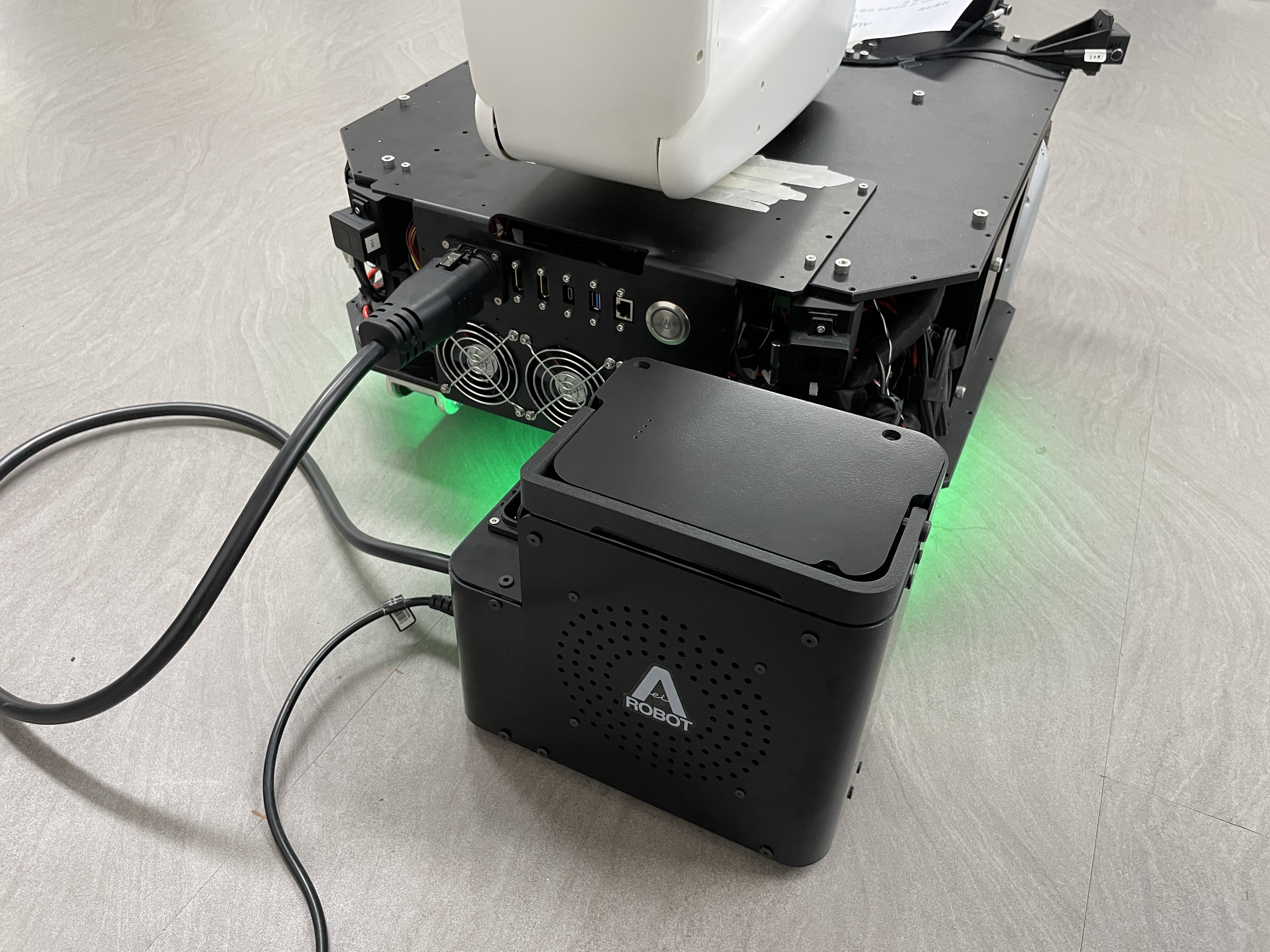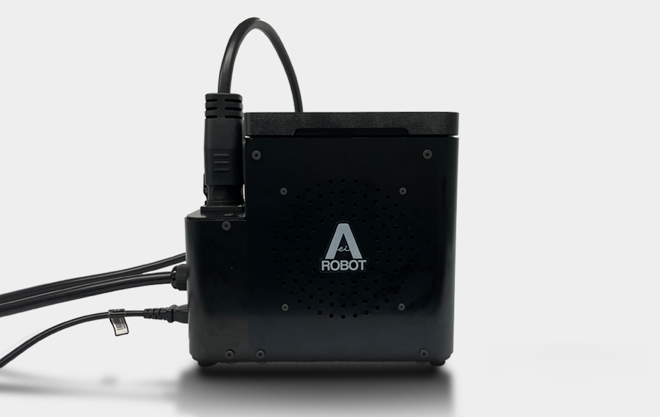 1. 충전기 커넥터를 로봇의 Power Port에 연결합니다.