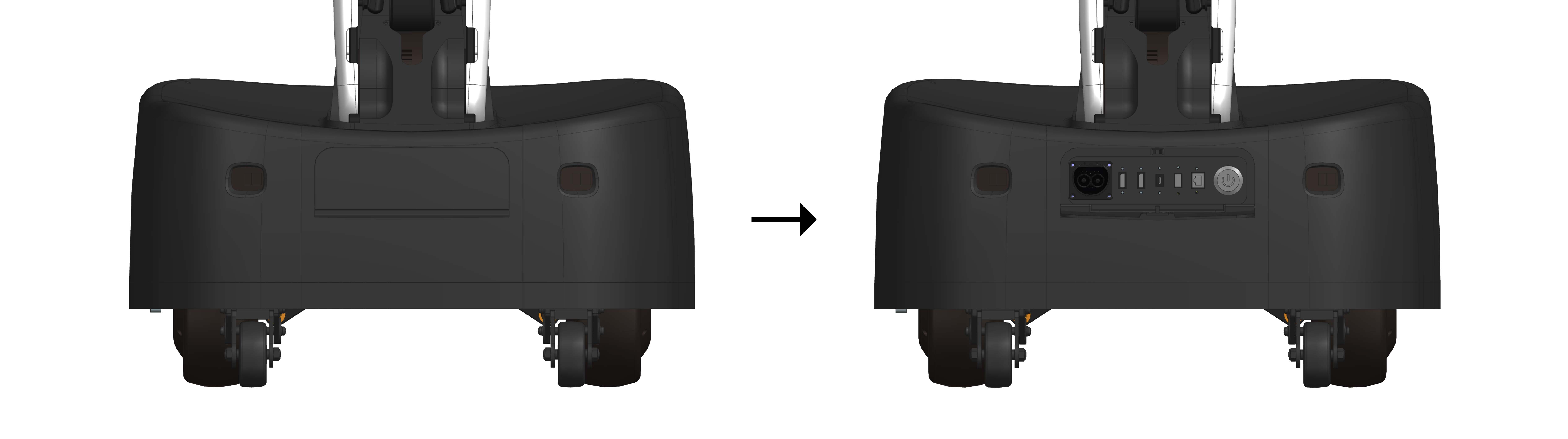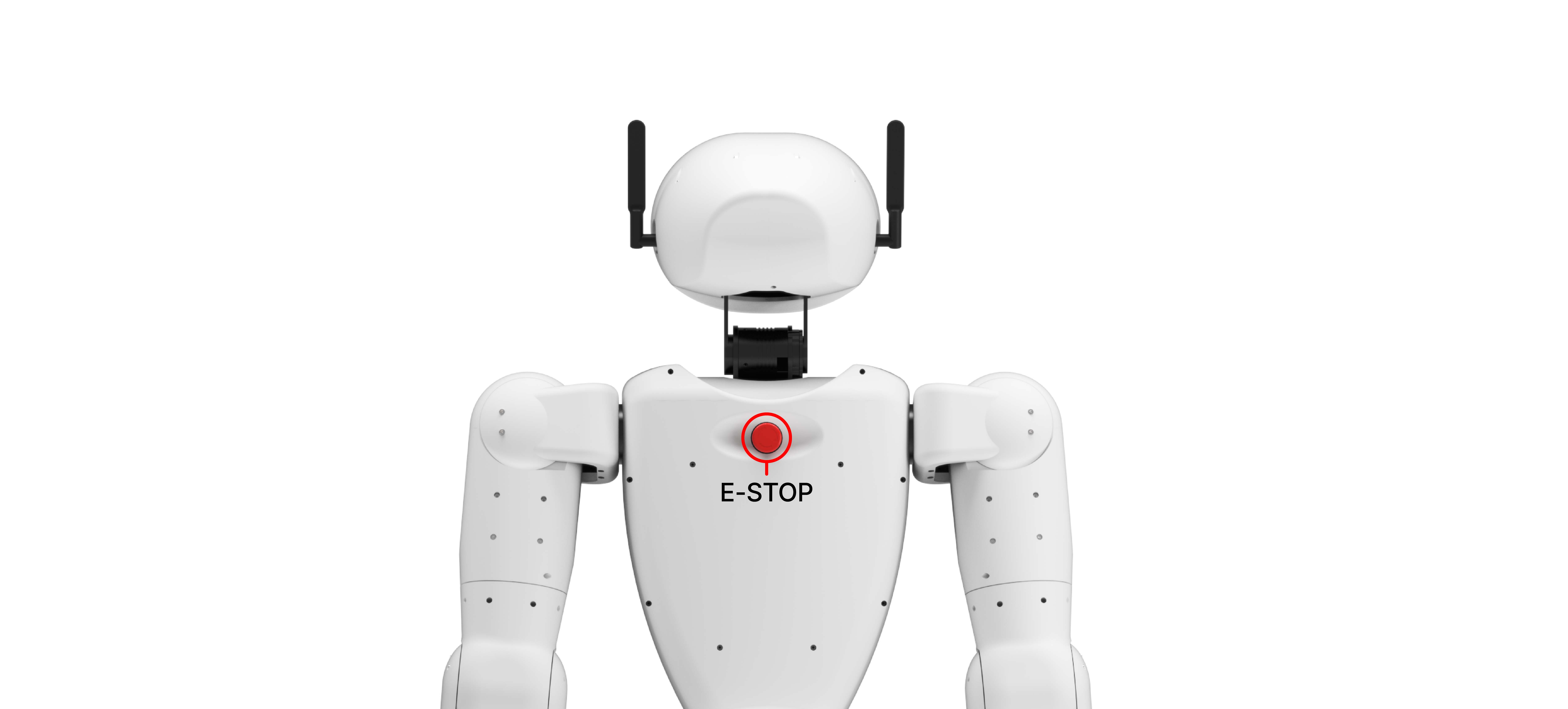 • 위급 상황 시 로봇 후방의 빨간색 비상 정지 스위치를 눌러 모터부 전원을 차단하십시오.