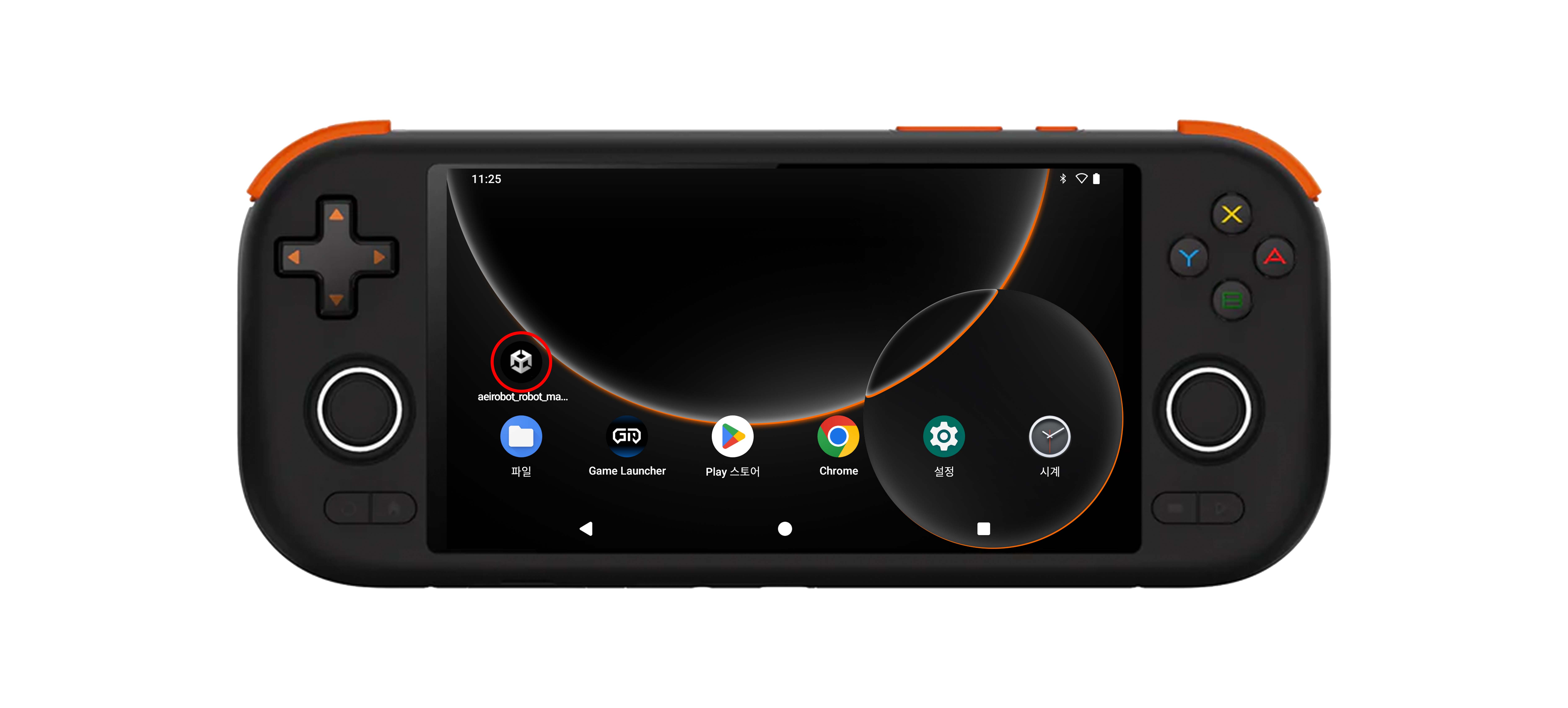 1. 조이스틱 상단의 전원 버튼을 길게 눌러 전원을 켭니다.