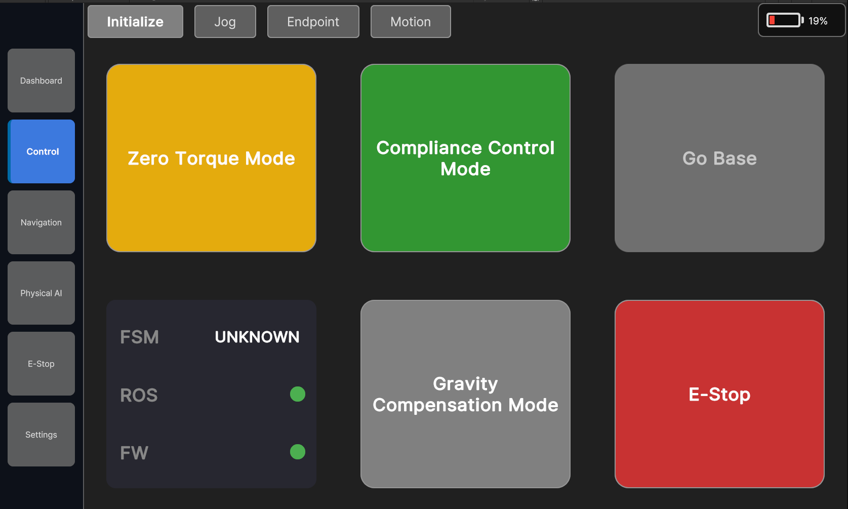 • 순서 : Zero Torque Mode -> Compliance Control Mode -> Go Base
